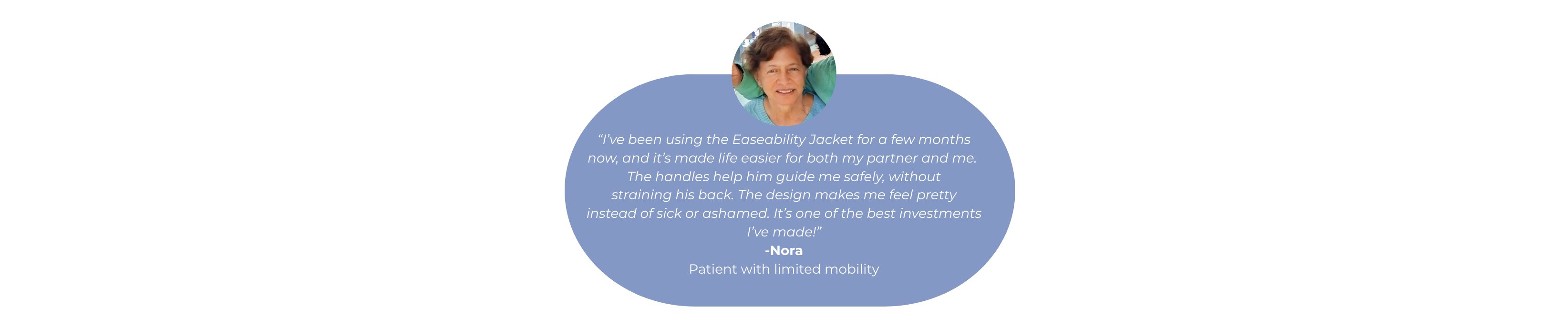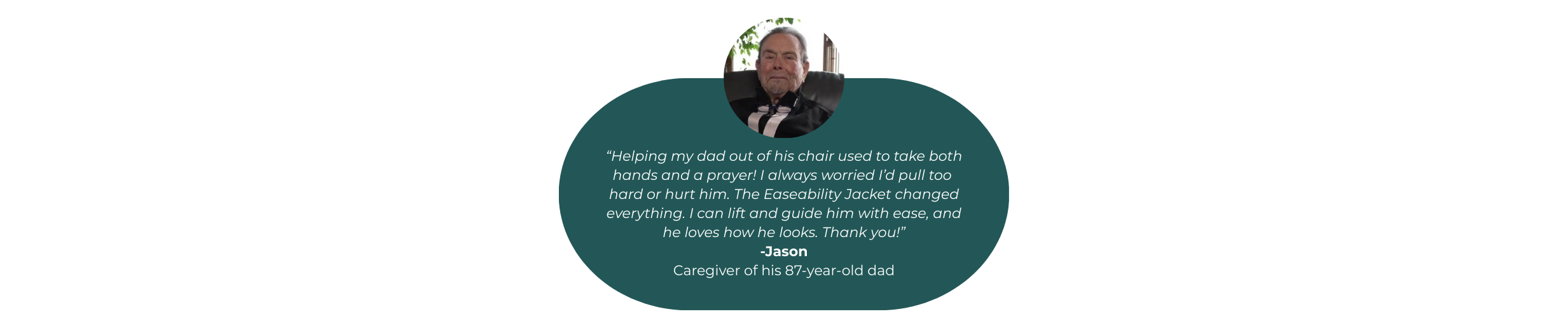 Our patent-pending adaptive clothing, features front and back climbing-grade handles, seamlessly integrated into our luxurious jackets.